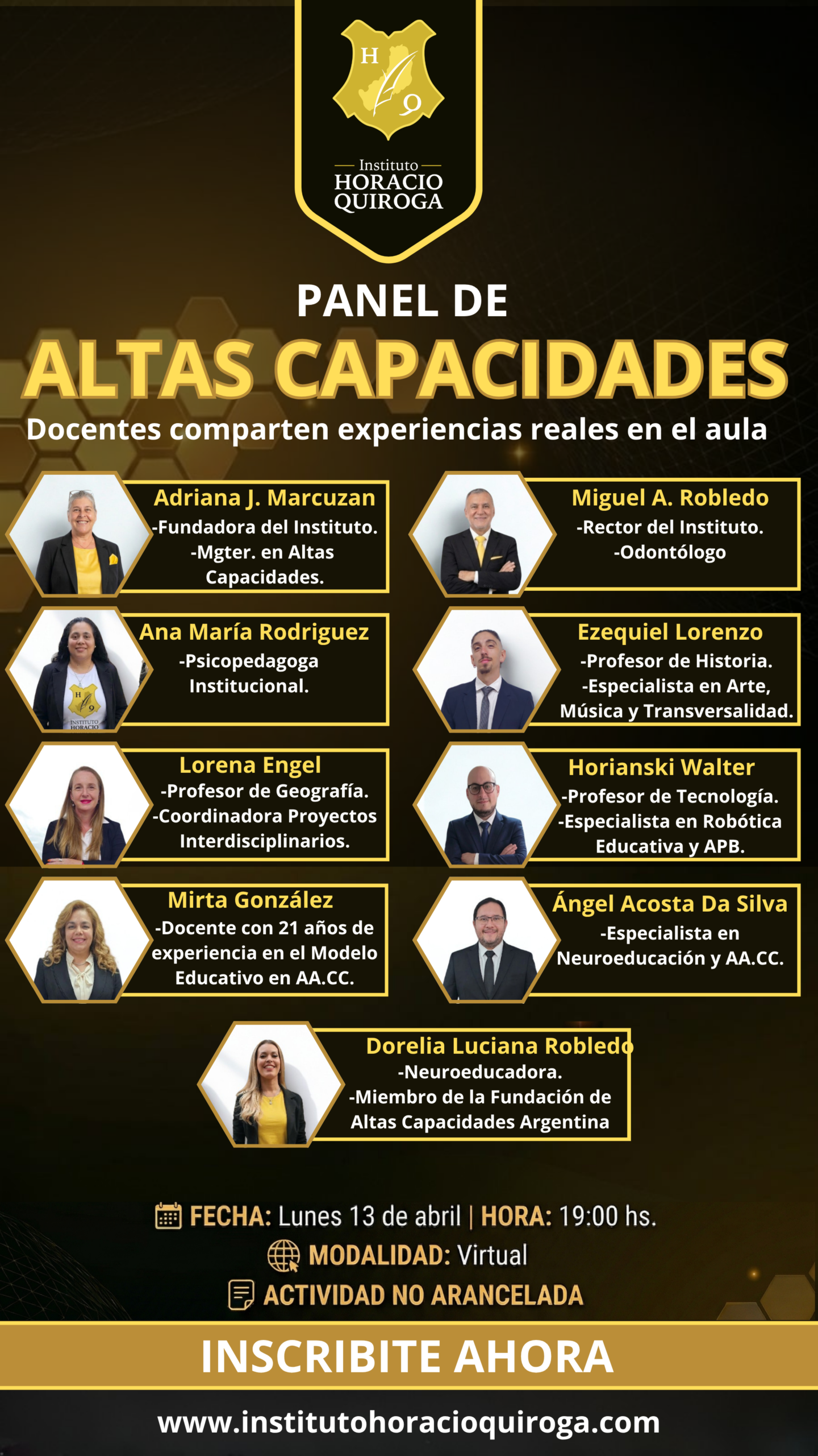 Tras el éxito y la gran convocatoria de nuestro reciente panel presencial, en el Instituto Horacio Quiroga reafirmamos nuestro compromiso con la equidad educativa. Queremos que las herramientas de detección y abordaje lleguen a cada rincón de nuestra provincia.